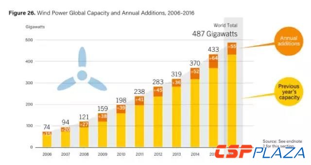 再生能源發電進展較快,主要是風電場和光伏發電沖刺速度加快。根據2017年REN21及前7年的數據匯集于下表。全球總發電量數據來自《BP Statistical Review of World Energy June 2017》。