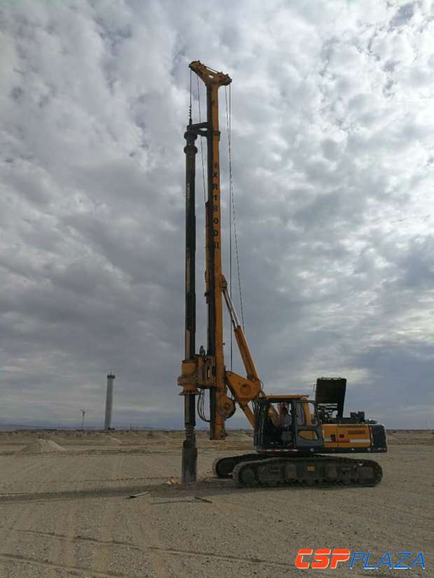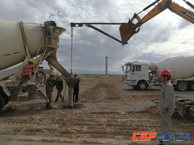 該電站于2014年開始前期工作,2015年底舉行開工奠基儀式,2016年11月份進入全面建設階段,目前正在進行定日鏡基礎的澆灌工作,鏡(jing)場樁(zhuang)基累計(ji)成孔4065個(ge),成樁(zhuang)3682個(ge),承臺367個(ge)。廠(chang)房等基礎設施建設,截止到7月26日,吸熱塔混凝土已澆筑至132.65米(mi),計(ji)(ji)劃(hua)(hua)于今年(nian)八(ba)月(yue)底完成(cheng)封(feng)頂(ding)。同時(shi)所有的定日鏡安(an)裝也計(ji)(ji)劃(hua)(hua)于2018年(nian)5月(yue)份(fen)完成(cheng)。汽(qi)輪機預(yu)計(ji)(ji)2018年(nian)3月(yue)份(fen)到貨,2018年(nian)6月(yue)份(fen)完成(cheng)汽(qi)輪機扣缸,預(yu)計(ji)(ji)2018年(nian)8月(yue)并網發電(dian)。