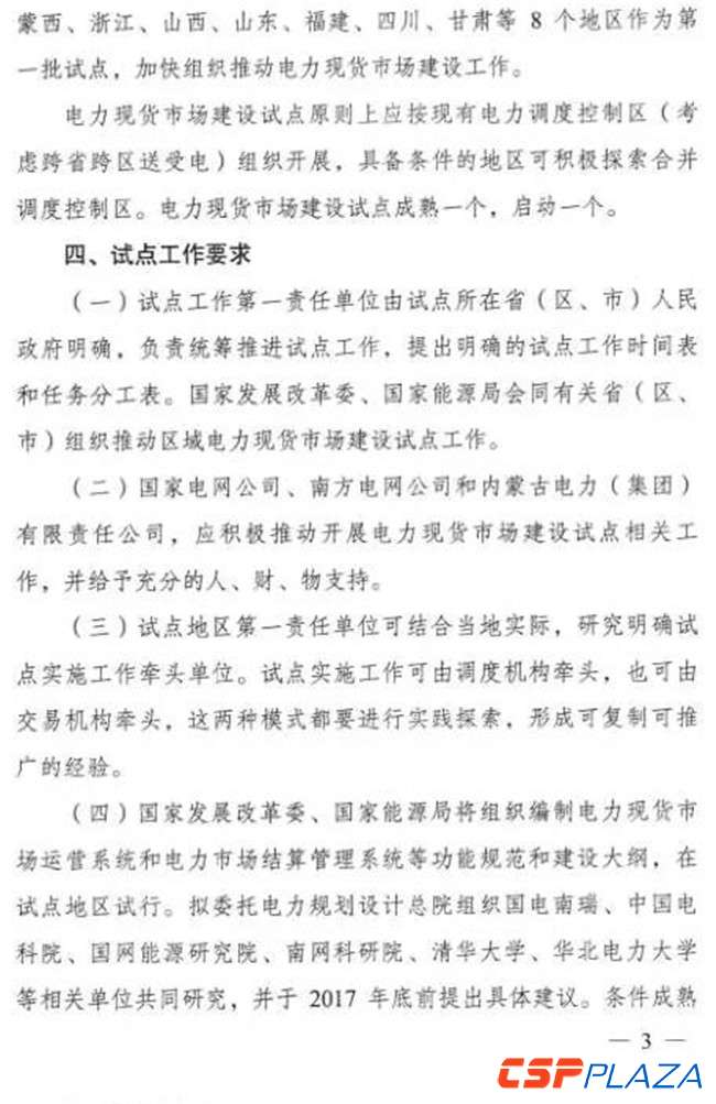 8月28日,國家發(fa)展(zhan)和改革委下發(fa)特急文件《關(guan)于開展(zhan)電力(li)現(xian)貨市(shi)場建(jian)設(she)試(shi)點工作(zuo)的(de)通知》,確定第一批現(xian)貨試(shi)點主要在南方(廣東)、蒙西、浙江、山(shan)東、福建(jian)、四川、甘肅等(deng)8個(ge)地區展(zhan)開,加快組織推(tui)動電力(li)現(xian)貨市(shi)場建(jian)設(she)工作(zuo)。