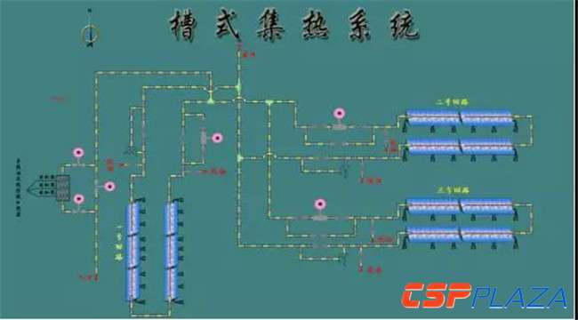 圖:槽式太陽能熱發電系統原理圖