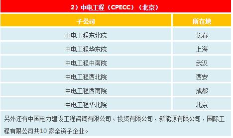 ?四家輔業集團:中國電力工程顧問集團(下屬六大區域設計院)、中國水電工程顧問有限公司、中國水利水電建設集團公司、中國葛洲壩集團公司。