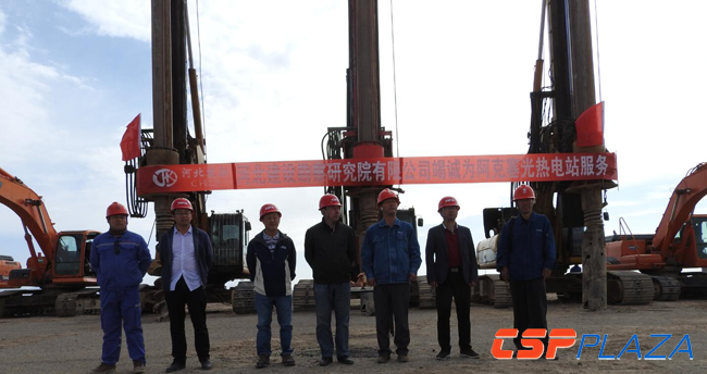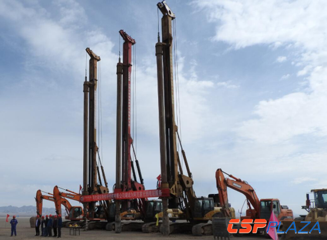 9月15日,金釩能源阿克塞50MW槽式熔鹽光熱示范電站集熱場樁基工程舉行了開工儀式,正式開始對集熱場樁基工程進行施工。