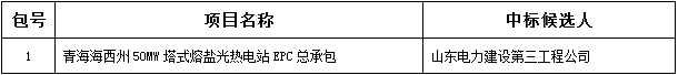 CSPPLAZA光熱發電網訊:9月22日,魯能集團、都城偉業集團就2017年海西州多能互補集成優化示范工程中的50MW塔式熔鹽光熱電站EPC發布中標候選人名單,稱該項目EPC總承包重新招標的評標工作已結束,山東電力建設第三工程公司(簡稱山東電建三公司)為中標候選人。此公示期為3日,如果沒有意外,山東電建三公司將拿下其在國內首個光熱發電項目的EPC總承包合同。