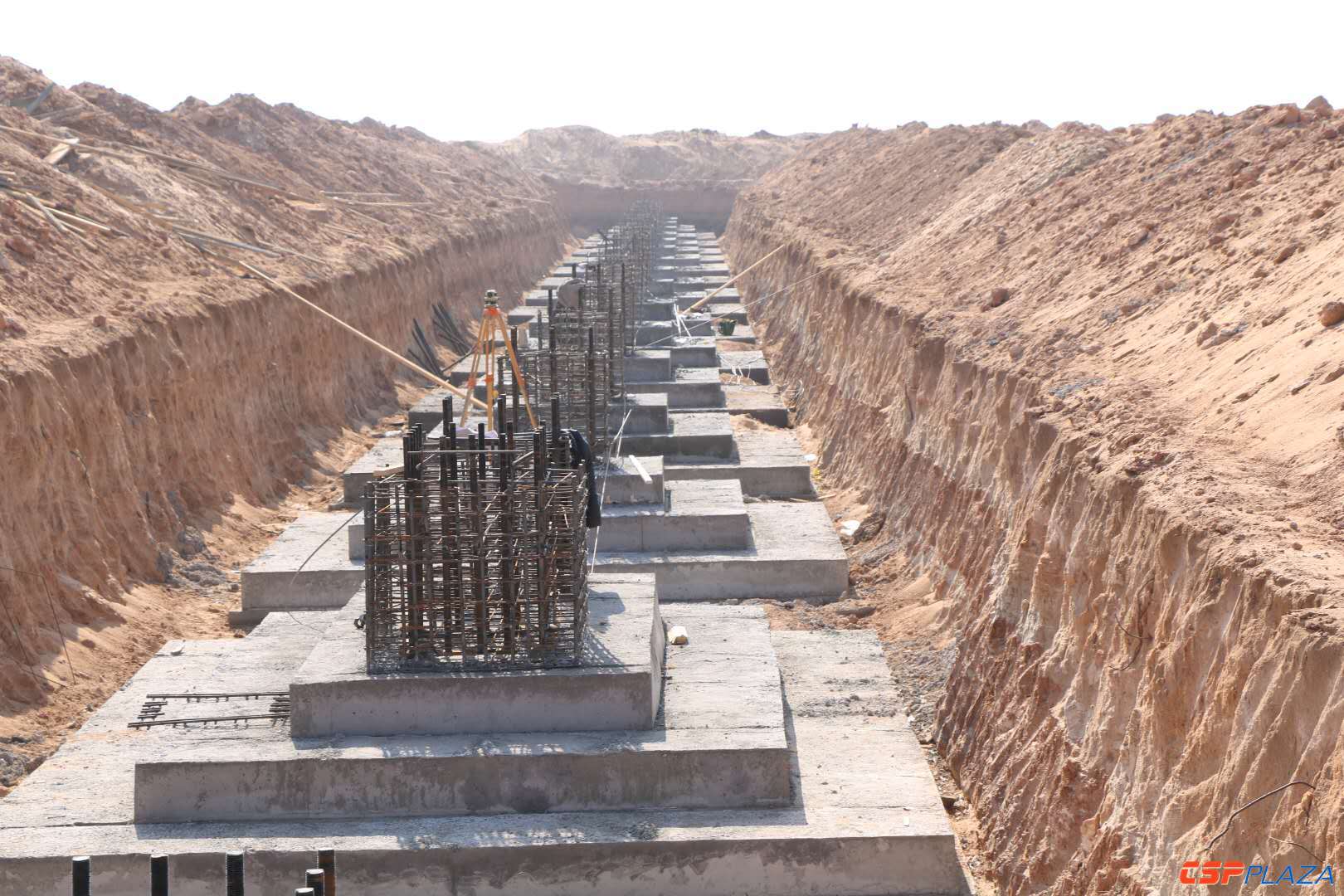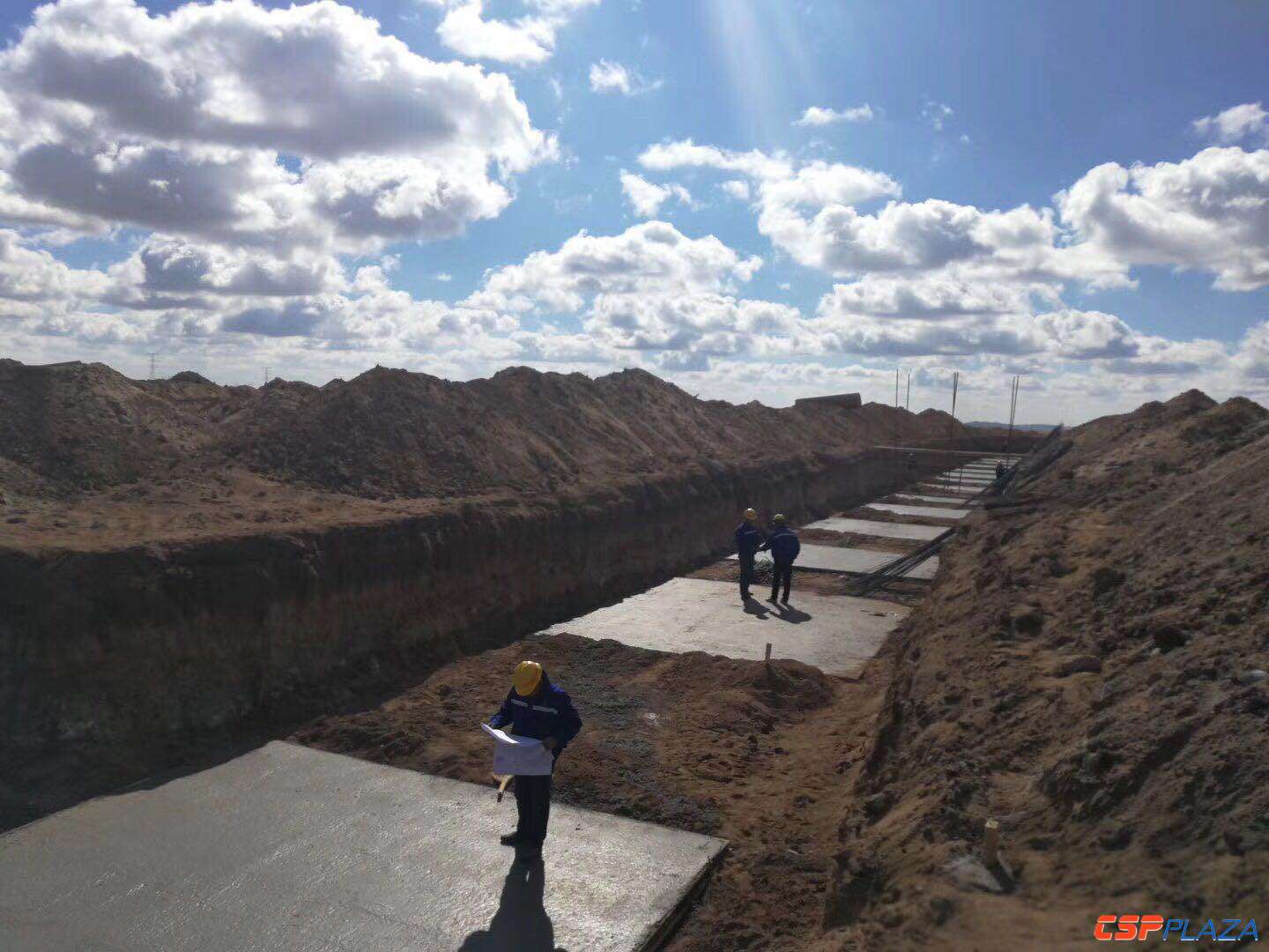 CSPPLAZA光熱發電網:近日獲悉,入選我國首批光(guang)(guang)(guang)熱(re)發電(dian)示范(fan)項(xiang)目的(de)中核龍騰100MW導熱(re)油(you)槽式光(guang)(guang)(guang)熱(re)發電(dian)項(xiang)目的(de)現場建設工作(zuo)正在緊張有序地推進,目前(qian)該(gai)項(xiang)目場平(ping)工作(zuo)已經完(wan)成95%左右,2萬平(ping)方米安(an)裝廠房基礎(chu)已經完(wan)成,12月份將完(wan)成結構安(an)裝,該(gai)項(xiang)目也是繼中廣核德令(ling)哈50MW槽式導熱(re)油(you)光(guang)(guang)(guang)熱(re)發電(dian)項(xiang)目之后,進度最快的(de)槽式光(guang)(guang)(guang)熱(re)項(xiang)目之一。
