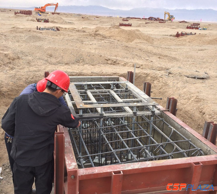 圖:深圳金釩阿克塞50MW槽式熔鹽光熱電站建設現場