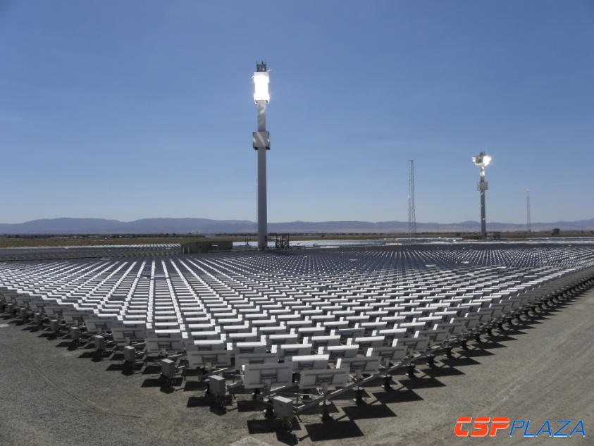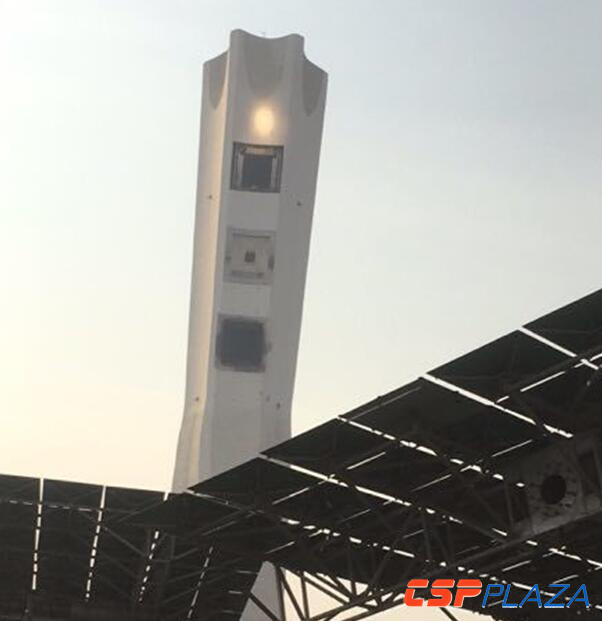 圖:首航節能敦煌10MW熔鹽塔式光熱(re)電站吸(xi)熱(re)器正在工作中(zhong)