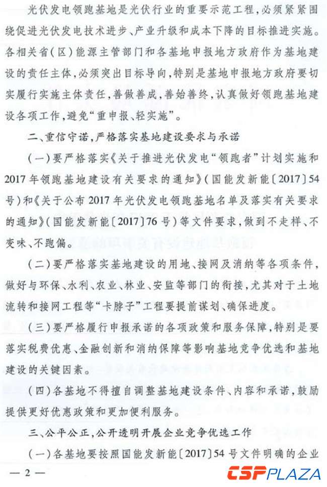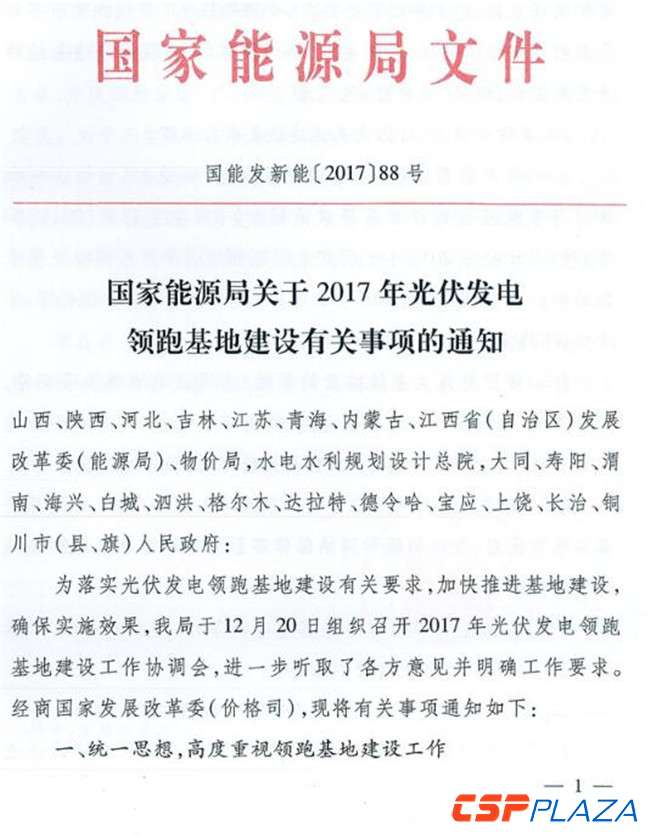 近日,國家能源局在京(jing)召(zhao)開“2017年(nian)光(guang)伏(fu)發(fa)電(dian)領跑(pao)基地(di)建(jian)(jian)設(she)工作協(xie)調會”,并隨(sui)后發(fa)布《關于2017年(nian)光(guang)伏(fu)發(fa)電(dian)領跑(pao)基地(di)建(jian)(jian)設(she)有關事項的(de)通(tong)知》(以下(xia)簡(jian)稱“通(tong)知”),提出“善(shan)做(zuo)善(shan)成、善(shan)始善(shan)終”八字原則,要(yao)求(qiu)各(ge)相(xiang)關省(區)能源主(zhu)管(guan)部門和各(ge)基地(di)申(shen)報地(di)方政(zheng)府作為基地(di)建(jian)(jian)設(she)的(de)責(ze)任(ren)主(zhu)體,必須緊緊圍(wei)繞(rao)“促進(jin)(jin)光(guang)伏(fu)發(fa)電(dian)技(ji)術進(jin)(jin)步、產業升(sheng)級和成本下(xia)降(jiang)”的(de)目標導向,特別是基地(di)申(shen)報地(di)方政(zheng)府要(yao)切實(shi)履行實(shi)施(shi)(shi)主(zhu)體責(ze)任(ren),認真做(zuo)好領跑(pao)基地(di)建(jian)(jian)設(she)各(ge)項工作,避免“重申(shen)報、輕實(shi)施(shi)(shi)”。