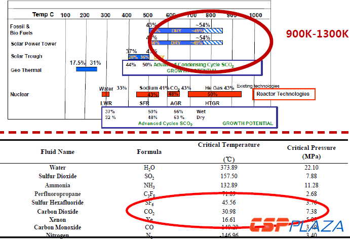 目(mu)前(qian)的(de)(de)聚光太(tai)陽(yang)能熱(re)發電項目(mu)一(yi)般采用(yong)蒸(zheng)汽動(dong)力(li)機組,其(qi)效率(lv)相對(dui)較低。在不改(gai)變太(tai)陽(yang)能熱(re)發電系統架構的(de)(de)前(qian)提下,CO?作為極具潛力(li)的(de)(de)工質,其(qi)工業運用(yong)有極高的(de)(de)價(jia)值,在不同(tong)熱(re)源溫度(du)下呈現出更高的(de)(de)效率(lv)。