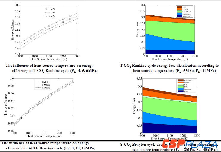 超臨界CO?在中低溫熱源研究中有出眾的表現,作為天然環保的工質在高溫區同樣有廣闊的應用前景。北京大學張信榮教授課題組做的工作是,通過建立CO?跨臨界布雷頓循環系統,衡量900k到1300k的熱循環效率,理論臨界點會發生變化。