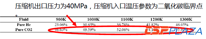 總體(ti)而言,布雷(lei)頓循環(huan)在高(gao)溫熱源情(qing)況(kuang)下,CO?其(qi)實是(shi)(shi)更有優勢的(de)。所以,采用(yong)布雷(lei)頓循環(huan)與(yu)第四代作對比(bi),壓縮機(ji)出口定為40MP的(de)情(qing)況(kuang)下,在相同工況(kuang)下,CO?在高(gao)溫段(duan)的(de)發熱效率比(bi)較平穩,而且是(shi)(shi)優于(yu)He。