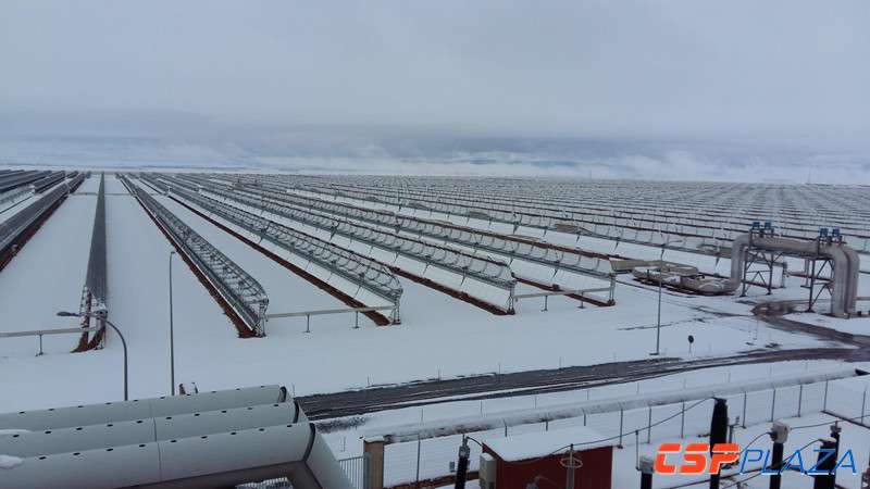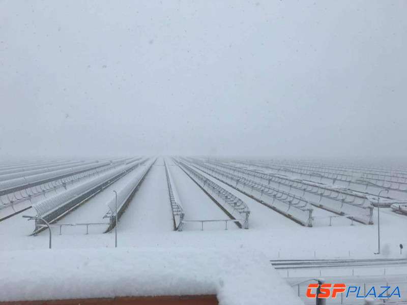 圖:被(bei)白雪覆蓋(gai)的Noor1槽式(shi)光熱電站