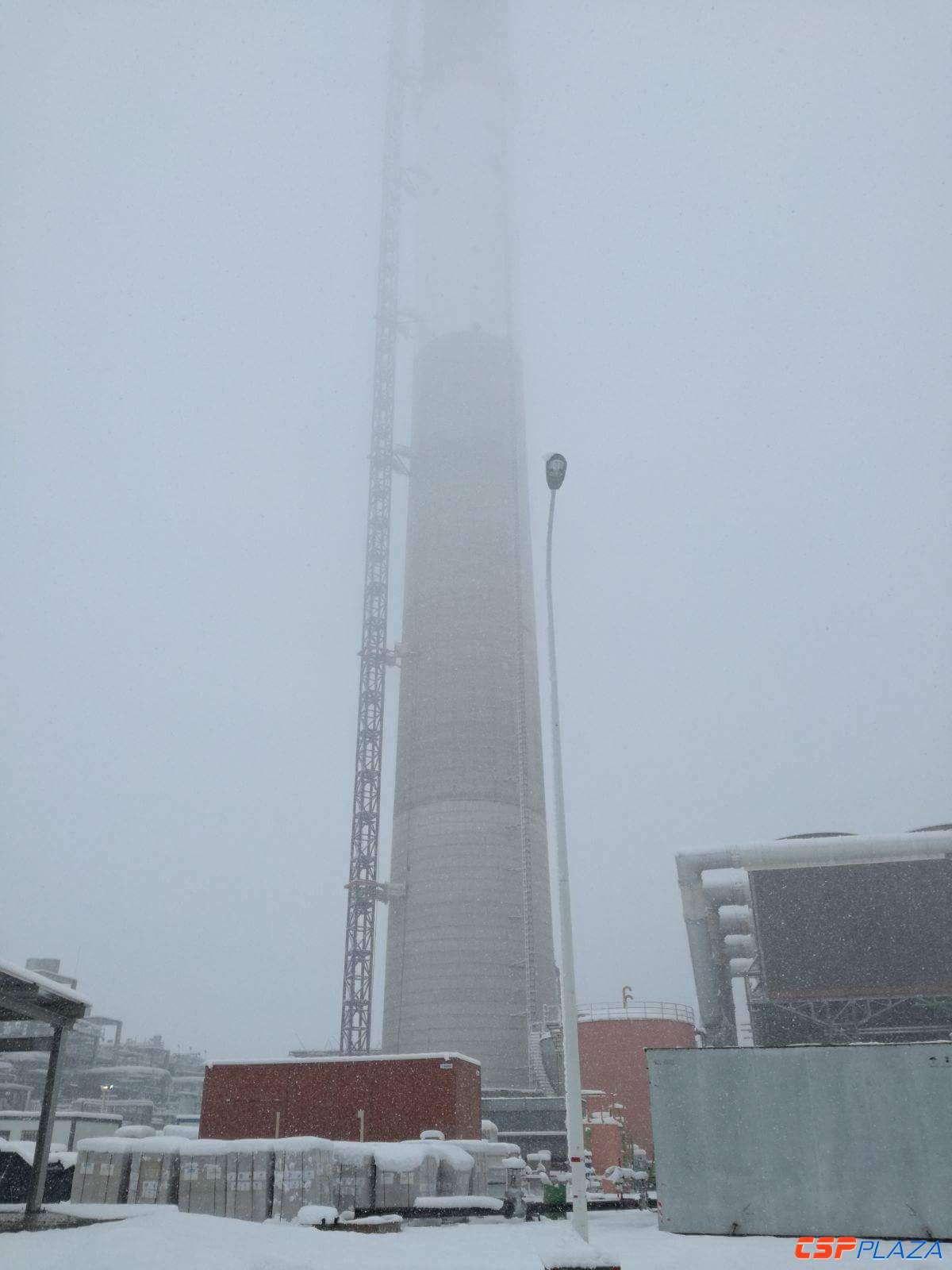 Noor3熔鹽塔式光熱電站是園區內唯一一個在建的塔式光熱電站,計劃2018年投產發電。裝機150MW的Noor3電站塔高225米,雪中的集熱塔消失在白色的寒氣中,營造出童話城堡的氛圍。