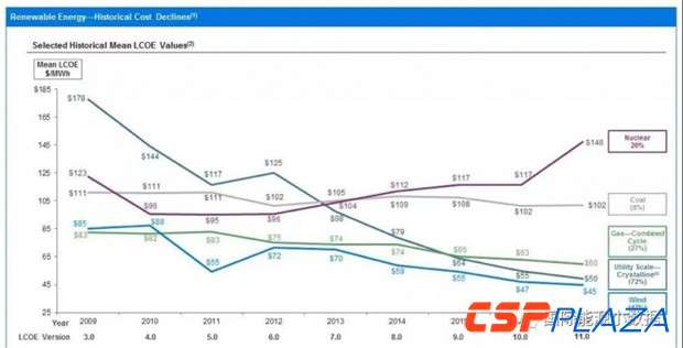 可再生能源一直被認為是“昂貴”的能源,但是事情正在起變化。以美國為例,Lazard公司的數據表明,風電(4.5美分/千瓦時)、太陽能光伏(5.0美分/千瓦時)度電成本已經低于天然氣發電(聯合循環發電6美分/千瓦時),大大低于煤電(10美分/千瓦時)。