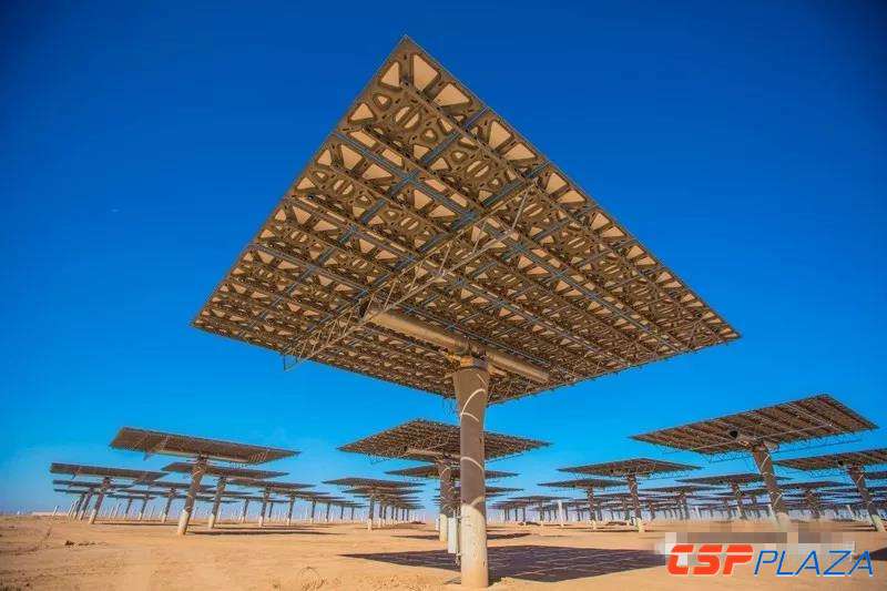 電站采用塔式光熱技術,鏡場內的7400塊定日鏡,通過全場追日系統,像“向日葵”一樣,根據太陽的角度變化,隨時調整,將太陽能光線全部集中投射到光熱塔頂部,加熱高溫高壓蒸汽,推動汽輪機做功發電。