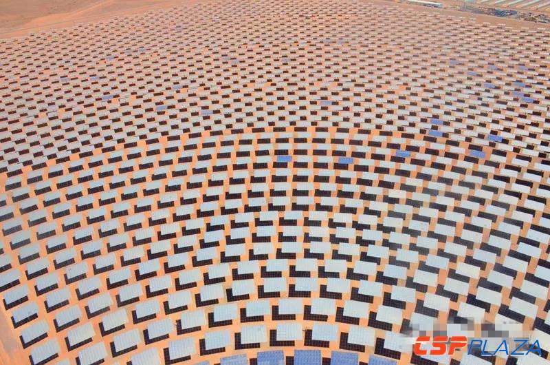 摩洛哥努奧二期200兆瓦光熱電站,是目前全球單機容量最大的槽式光熱電站。電站采用拋物線槽式太陽能聚熱發電技術,通過弧度鏡反射太陽光線,加熱導熱油,產生高溫蒸汽,帶動發電機進行發電。同時,吸熱系統將部分熱量儲存到儲熱罐中,在晚間進行發電。這一技術,可使電站每天發電17個小時,且整個發電過程不產生任何污染,解決了硅晶板光伏電站無太陽光就不能發電的問題,是目前全球最先進的清潔能源技術。