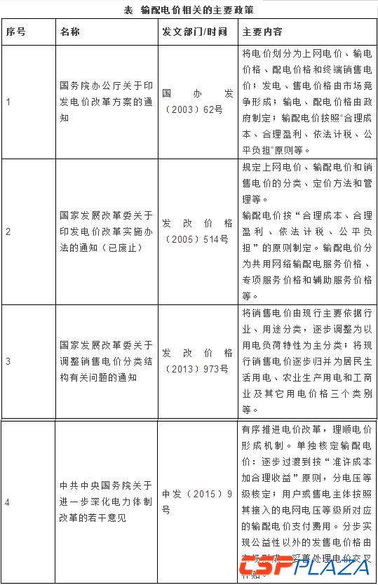 1. 輸配電價改革正按照“管住中間、放開兩頭”的電價改革總體思路不斷深化。《國務院辦公廳關于印發電價改革方案的通知》(國辦發〔2003〕62號)明確規定了輸配電價改革的原則和方向,給后續政策制定奠定了堅實基礎。《中共中央國務院關于進一步深化電力體制改革的若干意見》(中發〔2015〕9號)進一步將電價改革作為首要任務,明確提出單獨核定輸配電價,按“準許成本加合理收益”原則,分電壓等級核定等要求。