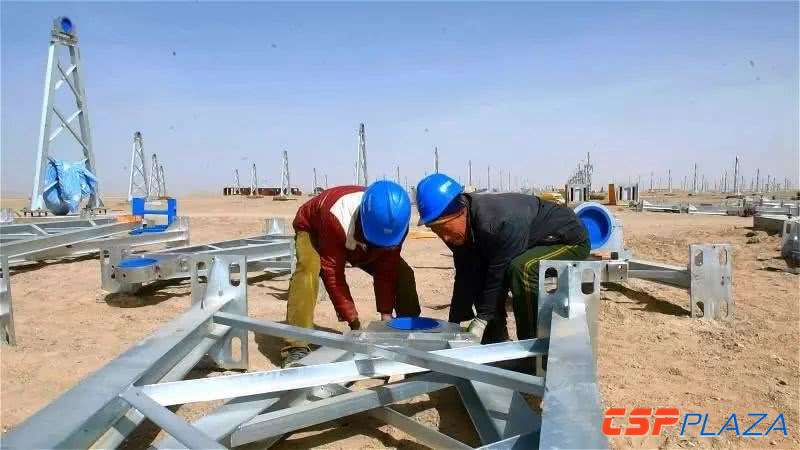 該項目爭取于2018年年底前投產并網發電。目前,正在進行二次反射塔塔架的焊接組裝及定日鏡的安裝工作。項目一號模塊的整體安裝工作已基本結束,二號至五號模塊的建設工作本月展開。