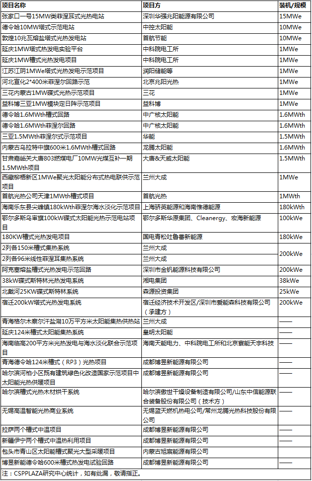 CSPPLAZA研究中心對此統計如下表,如欲了解各項目詳情請聯系CSPPLAZA: