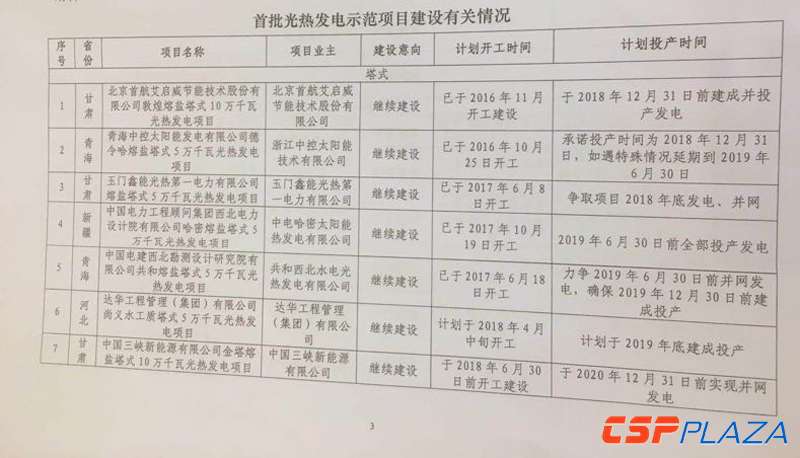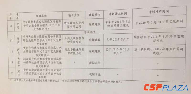 2、對通報中所列逾期未報送建設承諾的示范項目,取消項目示范資格,不再享受示范政策;(據通報信息,國電投黃河上游水電開發有限責任公司德令哈水工質塔式13.5萬千瓦光熱發電項目、北方聯合電力有限責任公司烏拉特旗導熱油菲涅爾式5萬千瓦光熱發電項目和中信張北新能源開發有限公司水工質類菲涅爾式5萬千瓦光熱發電項目逾期未予承諾。據此通知,這三個示范項目將無法享受示范項目電價政策。)