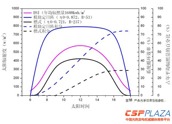 圖(tu):產品(pin)年平均(jun)光學效(xiao)率(lv)性能與槽式比較