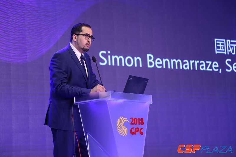 CSPPLAZA光熱發電網訊:2018年6月20~22日,第五屆中國國際光熱電站大會暨CSPPLAZA年會2018(CPC2018)在北京召開,國際可再生能源署(IRENA)高級代表Simon Benmarraze出席會議并發表致辭。