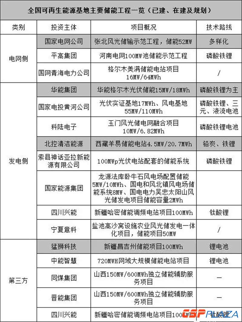 發電企業:以華能集團、國家電投黃河公司、國家能源集團為代表,在光伏、風電基地發電側布局儲能。驗證儲能技術路線,解決棄風限電問題,促進可再生能源消納。
