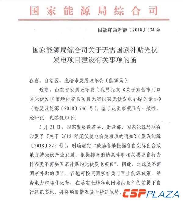 日前,國家能源局綜合司下發《關于無需國家補貼光伏發電項目建設有關事項的函》明確“對此類不需國家補貼的項目,各地按照國家有關可再生能源政策,結合電力市場化改革,在落實土地和電網接納條件下自行組織實施”。