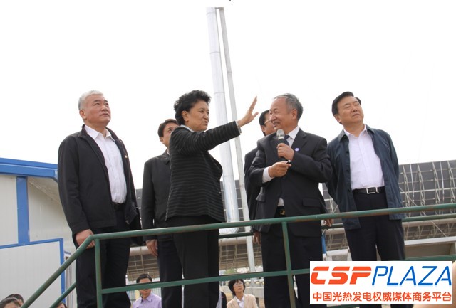 5月24日下午,中共中央政治局委員、國務委員劉延東在甘肅省委書記、省人大常委會主任王三運,甘肅省委副書記、省長劉偉平等領導的陪同下蒞臨聯盟成員單位蘭州大成科技股份有限公司太陽能示范基地調研聚光太陽熱能示范項目及關鍵裝備研發情況。