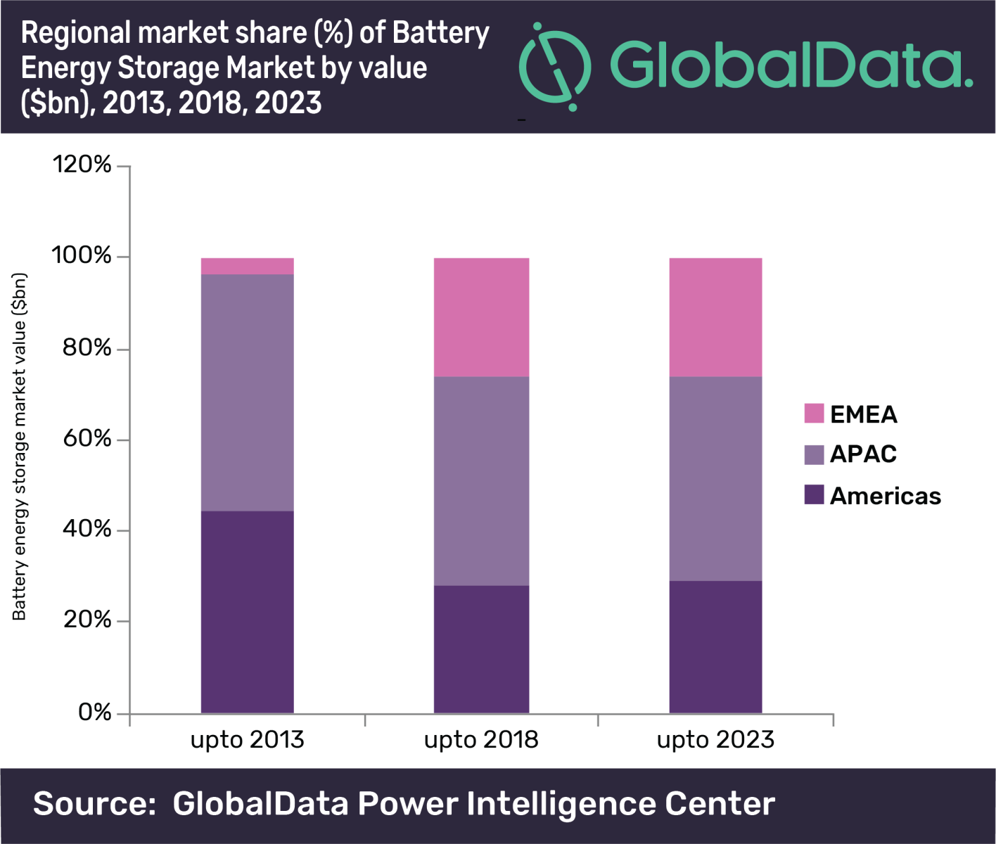 全球電池(chi)儲能市(shi)場(chang)預(yu)計到2023年將增長到131.3億美元,全球知名(ming)的研究(jiu)機構GlobalData在(zai)其最新的研究(jiu)報告中(zhong)透露,亞太地區(APAC),歐洲、中(zhong)東和非洲(EMEA)將成(cheng)為預(yu)測期(qi)間電池(chi)儲能系統的主要(yao)市(shi)場(chang)。