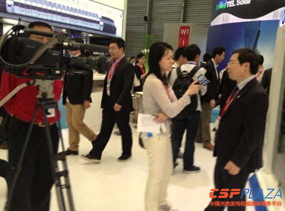 作為國內光熱行業的知名供應商,天瑞星繼去年展會的良好效果之后,再次攜帶光熱電站的核心部件——高溫集熱管在展會現場展示,吸引了眾多關注的目光。展會上,國內外的發電企業和專家都饒有興趣地咨詢了光熱電站項目的技術原理、生產情況和投資情況等等相關問題,CCTV NEWS頻道和上海電視臺都針對天瑞星集熱管做了相關采訪和報道,并于當晚8點的新聞中播出。