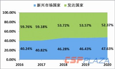 圖(tu)6 2016-2020年“500強”企業(ye)(ye)中(zhong)新興(xing)市(shi)場國家(jia)與發(fa)達國家(jia)企業(ye)(ye)總營業(ye)(ye)收入占比(bi)