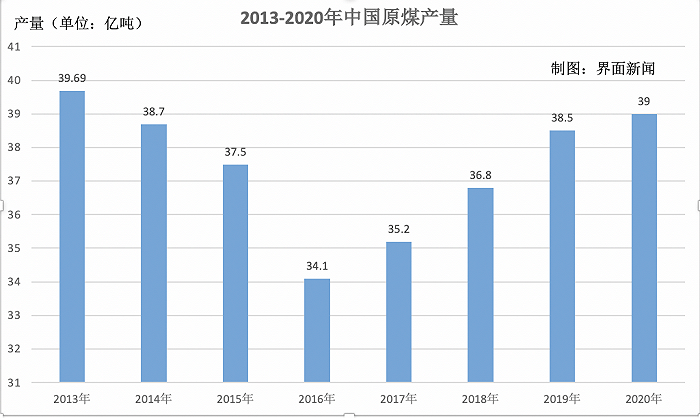 據界面(mian)新(xin)聞根據歷(li)年國民經(jing)濟和社會發展統計公報梳(shu)理,2015-2020年,國內原煤(mei)產量分別為37.5億噸、34.1億噸、35.2億噸、36.8億噸、38.5億噸、39億噸。