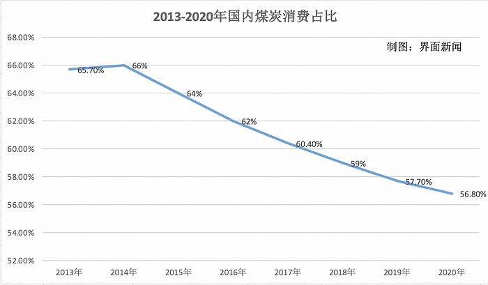 國家統計(ji)局數(shu)據顯(xian)示(shi),2018年(nian)(nian)國內(nei)煤炭占一次(ci)能(neng)源消費(fei)比例首次(ci)低于60%。2020年(nian)(nian)國內(nei)煤炭消費(fei)量(liang)占能(neng)源消費(fei)總量(liang)的56.8%,比上年(nian)(nian)下降0.9個(ge)百分點。