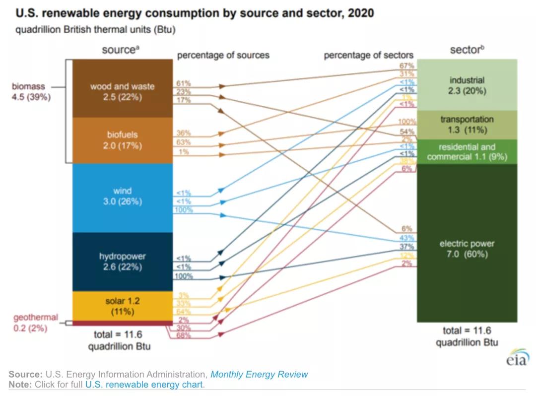 ——2020年,木(mu)材和廢(fei)棄物能源(yuan)(包(bao)括木(mu)材、木(mu)屑和垃圾填(tian)埋場產生(sheng)的(de)(de)生(sheng)物質廢(fei)棄物)約占美國可再生(sheng)能源(yuan)消費量的(de)(de)22%;工業、商業和電力設施將木(mu)材和廢(fei)棄物用作(zuo)發電、制熱和制造商品的(de)(de)燃料。