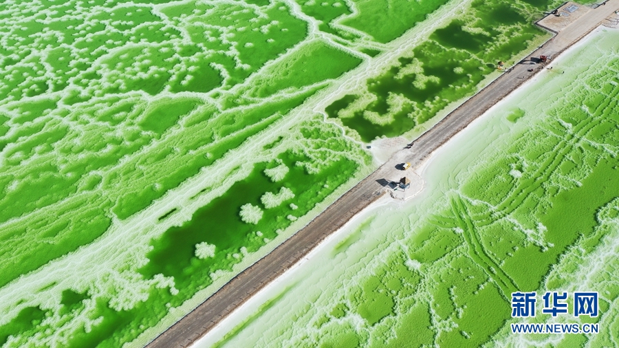 航拍(pai)察爾(er)汗鹽湖一角。新華網(wang)發(郭勇(yong)良攝)