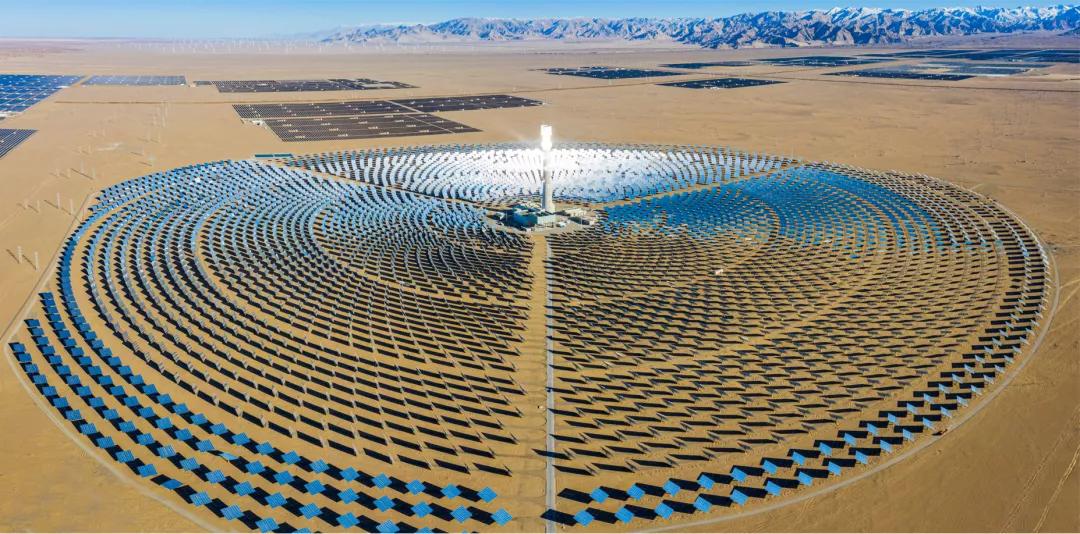 深藍色的光伏板熠熠生輝,風(feng)(feng)力(li)發(fa)電機的葉片迎風(feng)(feng)飛轉,百米(mi)高的吸熱塔和“鏡(jing)子海洋”組成科技感(gan)十足(zu)的熔鹽塔式光熱電站……望著位(wei)于青海省海南藏族自治州共和縣的綠色產業發(fa)展園,牧民(min)吾金多杰沒(mei)有想到,塔拉灘這片半荒漠化的“風(feng)(feng)沙之地(di)”,如今卻成為千萬千瓦級的新能源基(ji)地(di)。