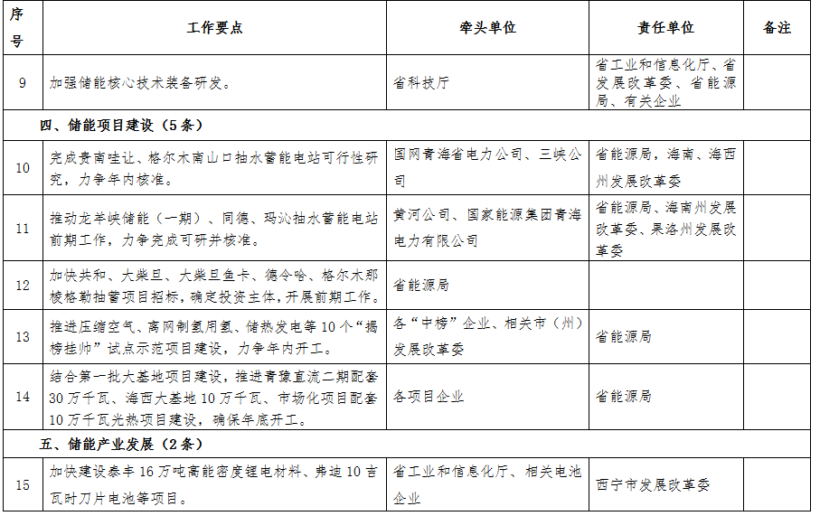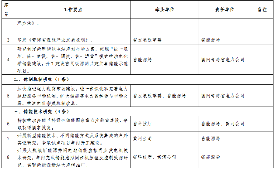 附件:青海省國家儲能發展先行示范區行動方案2022年度工作要點任務清單