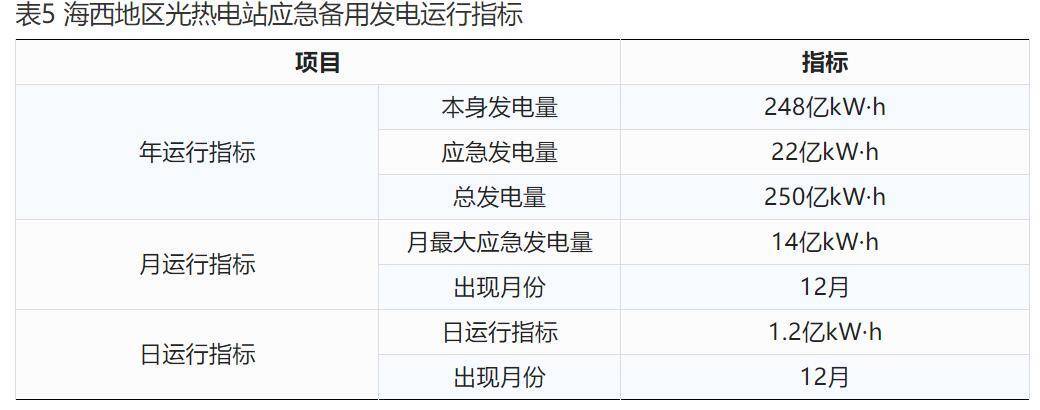 表5 海西地區光熱電站(zhan)應急備(bei)用(yong)發電運行指標