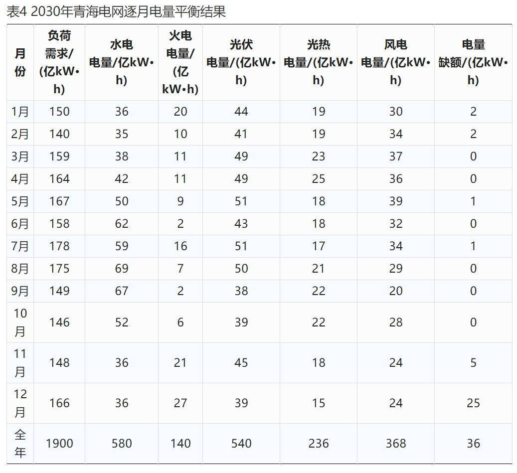 表4 2030年青(qing)海電(dian)網逐月電(dian)量平衡結果