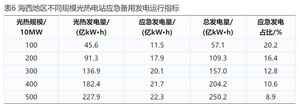 表6 海西地區不同規(gui)模光熱電(dian)(dian)站應急(ji)備用發電(dian)(dian)運行指(zhi)標