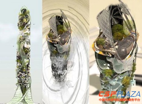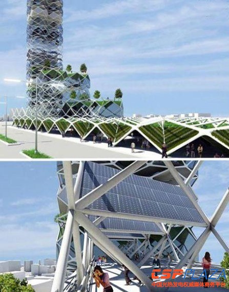 芝加哥至少擁有一座因經濟低迷拖累而尚未竣工的摩天大樓。但是,我們仍然希望,由佐卡·佐拉建筑設計公司(ZokaZolaArchitects)提出的芝加哥太陽能大廈(ChicagoSolarTower)有朝一日成為現實,將一個非常醒目的可持續發展城市設計范例帶到這座“風之城”(芝加哥的別稱)。太陽能大廈外立面的追蹤裝置上有多個圓形太陽能收集器,可全天跟隨太陽的方向旋轉,令固定在追蹤裝置上的太陽能電池板發電量增加40%,甚至太陽能電池板遭受的風壓也能轉換為清潔能源。