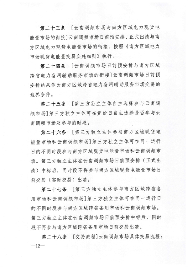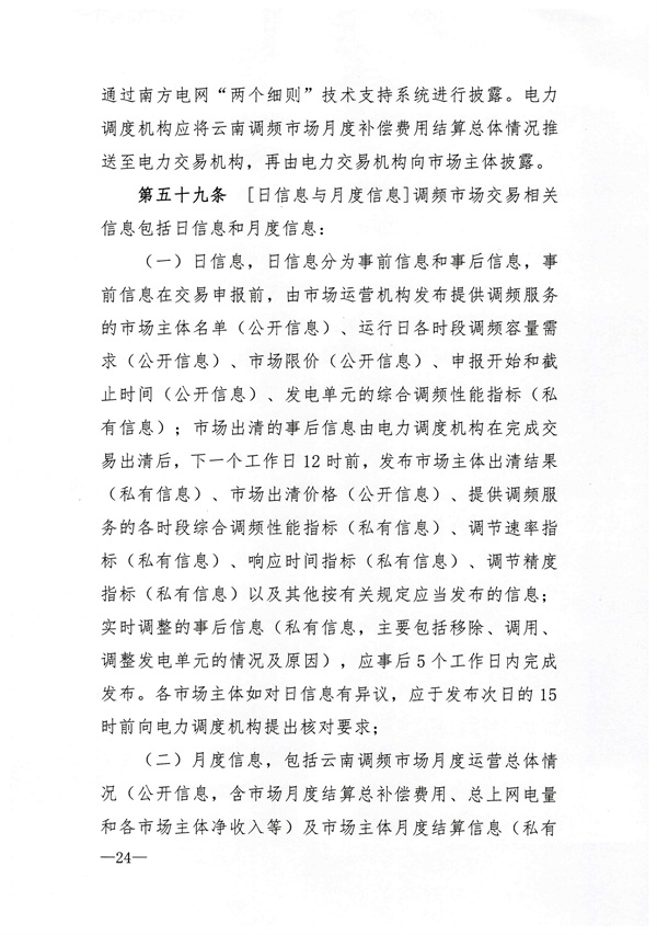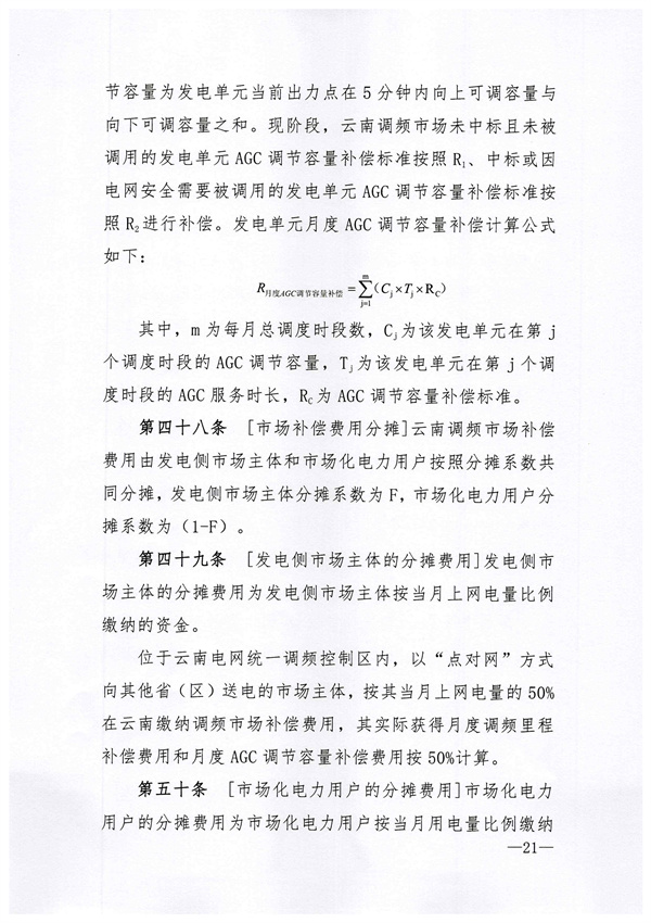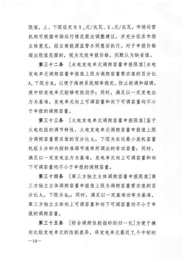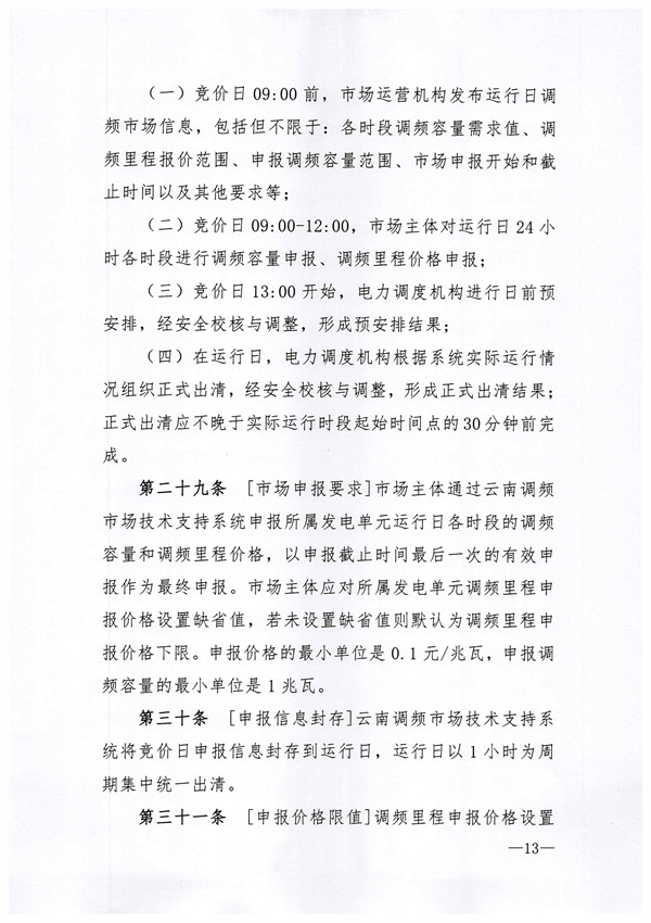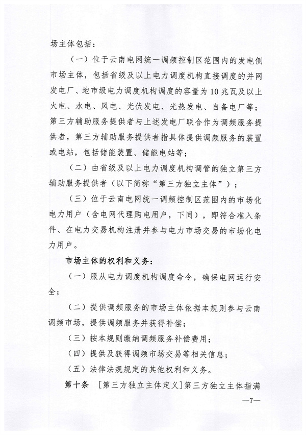 12月13日(ri),國家能源局(ju)云南監管(guan)辦公室印發(fa)《云南調頻輔助(zhu)服務市場(chang)(chang)運營規(gui)則(ze)(2023版)》。其(qi)中提(ti)到,位于云南電(dian)(dian)網統一調頻控制區范圍(wei)內的(de)發(fa)電(dian)(dian)側市場(chang)(chang)主體,包(bao)括省(sheng)級及(ji)以(yi)上(shang)電(dian)(dian)力調度機構直接調度的(de)并網發(fa)電(dian)(dian)廠、地市級電(dian)(dian)力調度機構調度的(de)容量為10兆瓦(wa)及(ji)以(yi)上(shang)火(huo)電(dian)(dian)、水電(dian)(dian)、風(feng)電(dian)(dian)、光(guang)伏發(fa)電(dian)(dian)、光(guang)熱發(fa)電(dian)(dian)、自(zi)備(bei)電(dian)(dian)廠等(deng)。