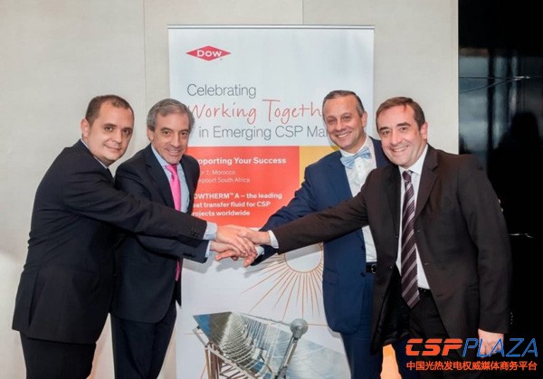 Dow化學歐洲、中東和非洲區商務副總裁Juan Antonio Merino表示,“新興市場正在加快推進和投資光熱發電技術應用,他們對已參與建設了世界級的光熱發電廠、技術已獲得實際項目證明的領先廠商更加信賴,作為光熱發電傳熱介質的領先廠商,我們將與新興市場的光熱發電產業共同成長。”DOW將向正在建設的Noor1光熱電站和Bokpoort光熱電站供應DOWTHERM? A導熱油。截至目前,全球共有35座光熱電站采用了DOWTHERM? A導熱油。
