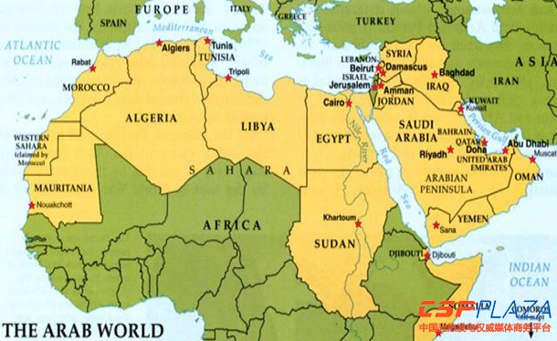 圖(tu):黃(huang)色(se)區域(yu)為MENA地區各國