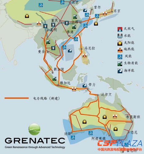 Grenatec的研究表明,到2050年亞洲將可能通過特高壓直流輸電線、天然氣管道網絡以及光纖電纜實現互聯,從而形成一個從東京開始、歷經首爾、北京、東南亞、并一直延伸到澳大利亞的泛亞洲范圍內的能源網絡。