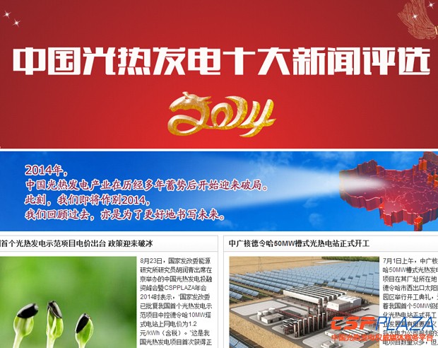 2014年,中國光熱發電產業在歷經多年蓄勢后開始破局。臨近年底,CSPPLAZA與光熱發電業內的朋友們一起梳理2014年度中國光熱發電行業發生的重要新聞事件,以回顧過去,啟迪未來!