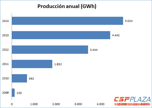 CSPPLAZA光熱發電網訊:西班牙光(guang)熱發(fa)電(dian)總發(fa)電(dian)量在(zai)2014年(nian)創下新高(gao),達到5013GWh,占當(dang)年(nian)全國總發(fa)電(dian)量的2.1%,相對2013年(nian)增長13%。