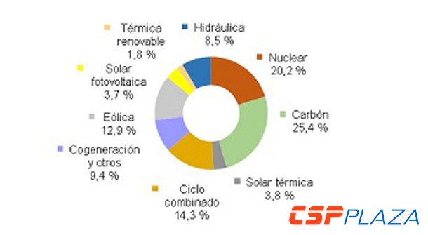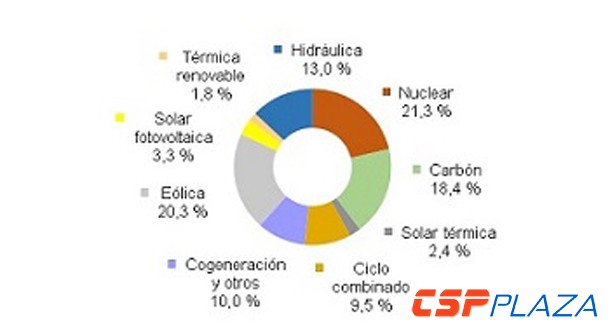 CSPPLAZA光熱發電網訊:截止2015年7月份,西班牙可再生能源發電量占發電總量的40.8%,其中風力發電20.3%,CSP發電2.4%,PV發電3.3%。