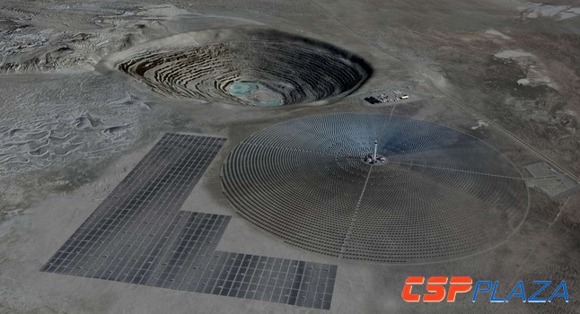 圖:SolarReserve智利CSP/PV混合供電(dian)項目(mu)想(xiang)象圖