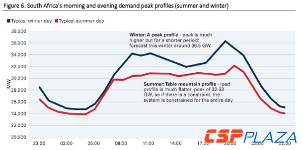 圖:南非夏冬兩季早晚用電高峰的電力需求對比